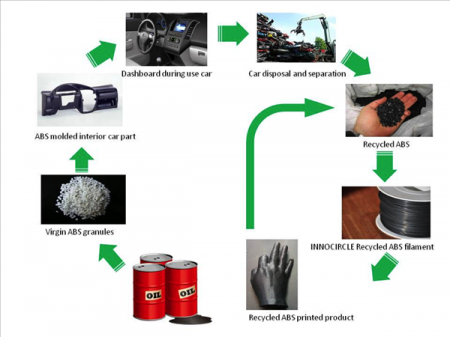 科技的發(fā)展一方面給人類帶來極大便利,另一方面也產(chǎn)生了更多的廢棄物和塑料垃圾,后者成為很多科學(xué)家和工程師們頭疼的問題,包括CIORC公司的老板JanWillemSlijkoord。他認(rèn)為使用回收塑料制造的InnoCircle3D打印線材為塑料工業(yè)創(chuàng)建了一個“封閉的循環(huán)”,顯著改善了3D打印領(lǐng)域可持續(xù)發(fā)展的機(jī)會。關(guān)于處理ABS和PET的兩個“封閉的循環(huán)”,Slijkoord做了詳細(xì)解釋。