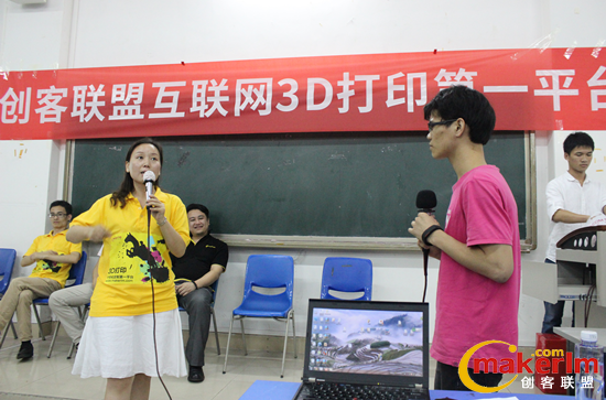 創(chuàng)客聯(lián)盟的創(chuàng)始人陳晶,通過親身經(jīng)歷講述成功秘笈——相信自己、無懼失敗。從創(chuàng)業(yè)初期的舉步維艱,到現(xiàn)在一步一個腳印,得到社會各界的認可,更重要的成就感來自能借助創(chuàng)客聯(lián)盟3D打印平臺,讓設(shè)計師的想法落地成型、用戶滿意、市場認可、多方利好。