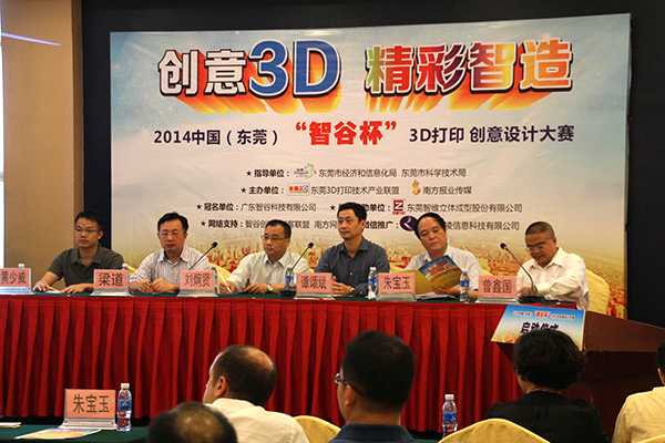 今天上午,在東莞的會展酒店舉行一場特別的發布會,“創意3D  精彩智造”2014中國(東莞)“智谷杯“3D認打印創意設計大賽,創客聯盟成為本次大賽的官方創意收集平臺,在創客聯盟網站提交創意即為報名成功。東莞市經信局副局長劉炯賢、東莞市經信局科長梁東明、東莞市科技局副調研員朱寶玉、廣東智谷科技有限公司梁道、廣東銀禧科技股份有限公司董事長譚頌斌、東莞智維立體成型股份有限公司黃少威,創客聯盟代表等嘉賓出席了活動,東莞3D打印技術聯盟執行理事長曾鑫國主持會議。多個新聞媒體參與報道。
