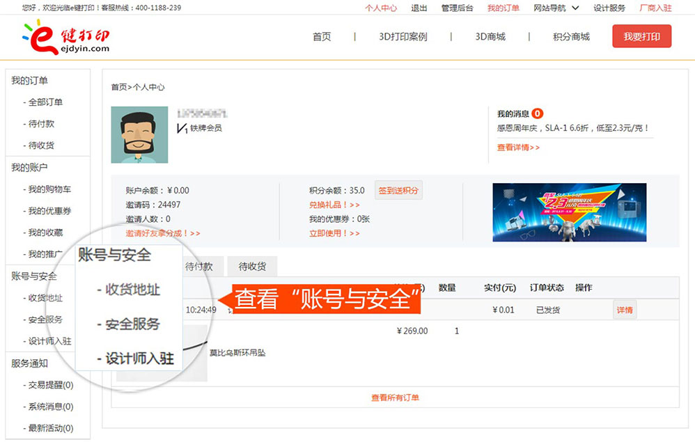 - 最新成交 深圳市3D打印訂單 138****2360 訂單金額¥622.98元 已付款成功